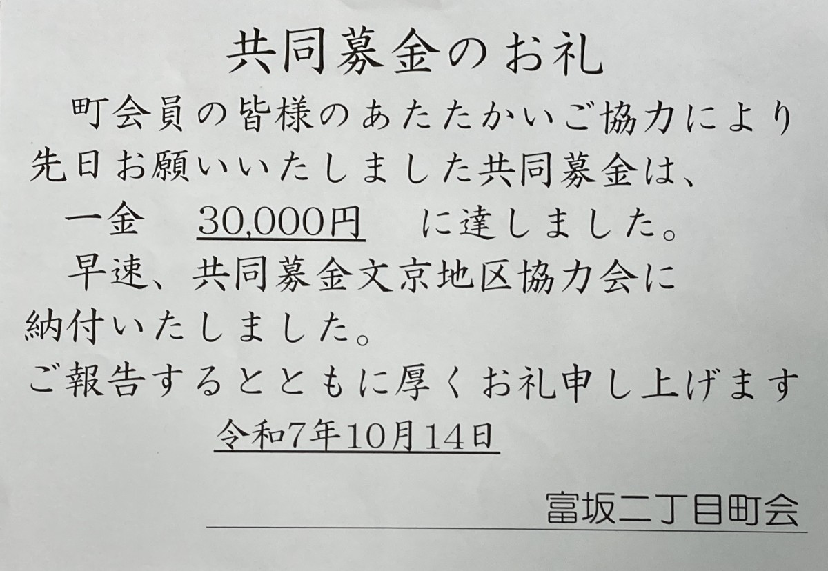 町会はこの運動に対し、今期活動費から出金いたしました。